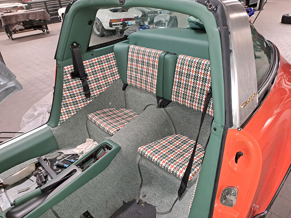 Als Meisterbetrieb mit langjähriger Erfahrung in der Oldtimer-Restauration fertigen wir komplette Innenausstattungen im Stil der jeweiligen Ziel-Epoche – von originalgetreuer Sitzpolsterung über Türverkleidungen und Himmel bis hin zu Teppichsätzen und passenden Ziernähten. Dabei verwenden wir ausschließlich erstklassige Materialien, die dem Charakter des Vorbilds gerecht werden.